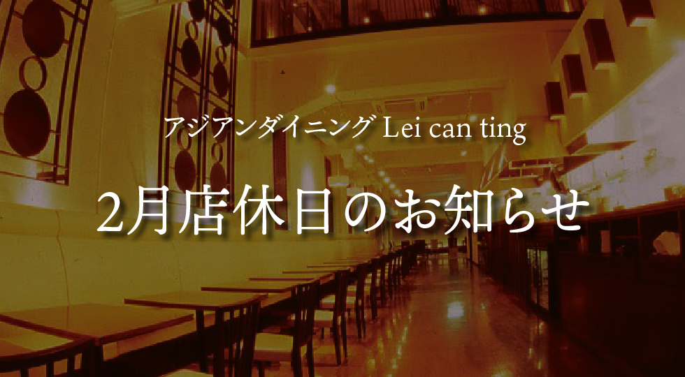 【アジアンダイニング Lei can ting 箕面本店】2月店休日のお知らせ